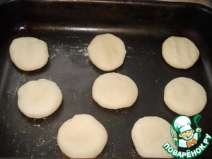 Сформировать из подошедшего теста шарики, приплюснуть ладошкой и оставить подходить на 30 минут.