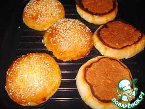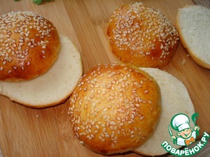Начинаем собирать гамбургер. Каждую булочку разрезаем вдоль.