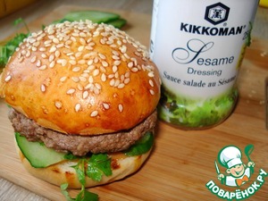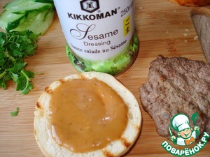 На булочку намажем салатный соус с кунжутом от Kikkoman.