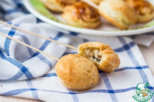 Рецепт из разряда палочка-выручалочка. Готовиться на раз-два! Начинка может быть абсолютно любой, как сладкой, так нет. Сегодня я сделала закусочные пирожки с курицей для пикника. Фишка рецепта в палочках, такую закуску удобно брать с собой на пикник, где не всегда есть возможность помыть руки. Есть пирожок с палочки очень удобно и весело. Такая форма обязательно понравиться маленьким привередам.