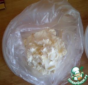 Выкладываем творожную массу в (конвертик кулинарный, у меня нет его, по этому пакетик одноразовый с отрезанным уголком)