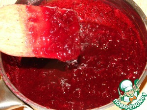 Вишню разморозить. Сок не сливать. Взбить в блендере совсем чуть-чуть. До однородного состояния не надо, а только чтоб измельчить. Добавить сахар, довести до кипения и проварить минут 10-15, до того, как начнет густеть.