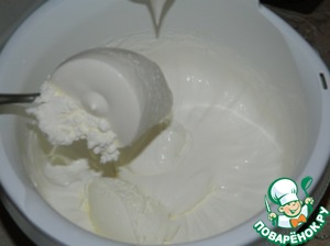 Взбить сливки с сахарной пудрой. Добавить творожный сыр. Перемешать до однородного состояния. Поставить в холод на час.
