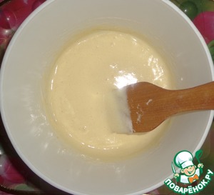 Желтки взбить с сахаром, добавить муку и хорошо перемешать.