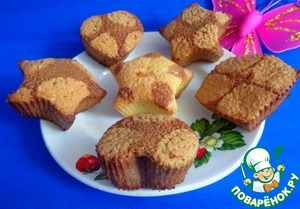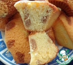 У меня вышло 12 кексиков. Ставим в разогретую духовку и выпекаем до сухой спички)). У меня выпекались где-то 10-15 мин.