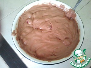 Берем форму, накрываем ее бумагой для выпечки, смазанной маслом, выкладываем тесто, половину формы. Выпекаем в духовке, которая предварительно нагрета до 175 градусов. Готовность проверяем деревянной палочкой. Из данного количества теста получается два коржа, которые разрезаем, каждый на два, и оставляем остывать.