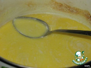 Сливки прокипятить с маслом и полить по всей поверхности, лучше ложкой, ещё горячий пирог.