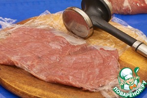 "Расплющиваю" гладкой частью молотка каждый кусочек. Это нежное мясо не нужно сильно отбивать!