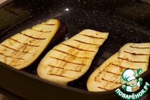 Обжариваю с двух сторон на разогретой сковородке-гриль, смазаннной совсем немного растительным маслом.