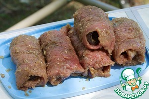 Идея этого рецепта позаимствована у Влада Пискунова, я внесла небольшие изменения. Телятина при всей своей полезности и привлекательности не отличается особенной сочностью после обжаривания на углях. Одним из вариантов решения может стать рулет с маринованными в оливковом масле и соевом соусе баклажанами. Угощайтесь, надеюсь, что вам понравится!
