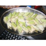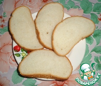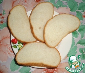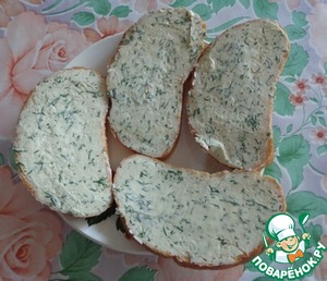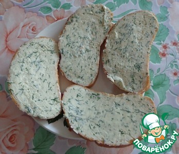 Намазываем полученную смесь на ломтики батона равномерным слоем.