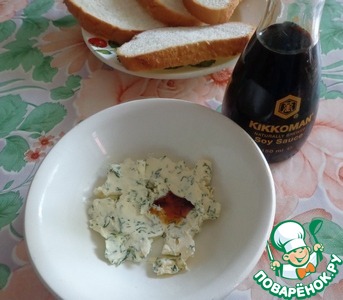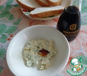 Сливочное масло смешать с мелко порезанным укропом и добавить соевый соус.