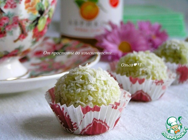 - Стружка кокосовая (120 г - в конфеты, 30 - для присыпки) — 150 г