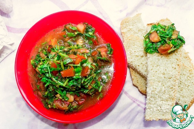 3. Другие 2 помидора нарезать мелким кубиком, зелень мелко нарезать. Переложить тоже в чашку.