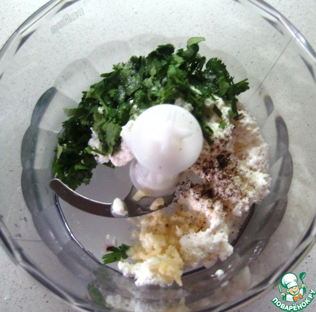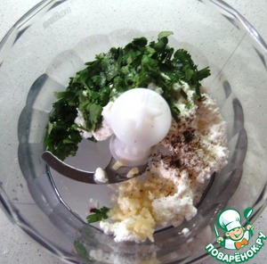 В чашу блендера положить творог, зелень кинзы, давленный чеснок, сок половинки лимона, соль и душистый перец по-вкусу. Все хорошенечко взбиваем до однородности.
