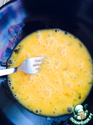 2 яйца легонько (без энтузиазма) взбить вилкой буквально 15 секунд. Никаких миксеров и блендеров, пена нам не нужна. Посолить-поперчить по вкусу.