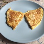 Затем убавить огонь на практически минимальный и дать постоять омлету еще секунд 20-30 (смотрите на края, когда они побелеют и будут отлипать от сковороды, значит омлет готов). Крышка не нужна, переворачивать на другую сторону тоже не нужно.