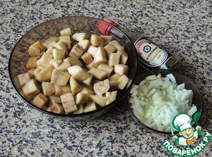 Лук мелко покрошить. Шампиньоны нарезать крупно (примерно как баклажаны).