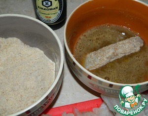 Затем в яйце. И ещё раз в сухари и яйцо. И жарим в масле.