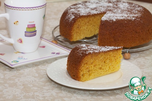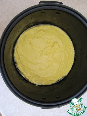 Чашу мультиварки смазать сливочным маслом, припылить мукой, вылить тесто. Включить программу "выпечка" на 50 минут. После окончания программы вытащить чашу и дать немного остыть пирогу, затем переложить пирог с помощью поддона для приготовления на пару на решетку для остывания.