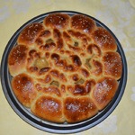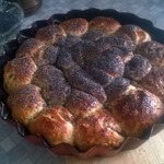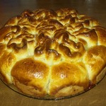 Стали жаловаться на меня дети и муж:"Давно нам булочек не пекла!" А мне так хотелось что-нибудь новое испечь. И тут мне на глаза попадается вот такая идея пирога из булочек в венгерском кулинарном форуме. Все остались довольны - муж и дети выпечкой, а я процессом приготовления!
