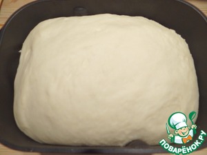 Помещаю ведерко в хлебопечку, включаю режим замеса теста.