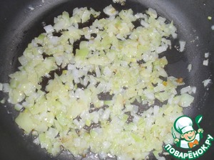 Лук мелко нарезать и обжарить на сливочном масле на среднем огне до золотистого цвета.