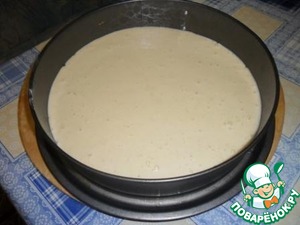 Тесто вылить в форму (у меня d=28 см.), смазанную маслом и выпекать минут 25-30 при температуре 170 градусов.