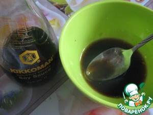 Приготовим заправку. Смешаем мёд, соевый соус, сок лимона, перец черный, растительное масло.