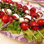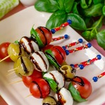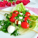 Представляю Вам мой вариант всеми любимой закуски. Мне очень нравится подавать капрезе именно на шпажках.