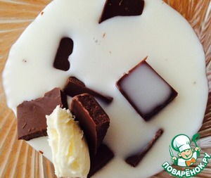 Шоколад, кусочек сливочного масла и молоко растопить (в микроволновке или на плите). Вместо шоколада можно самому сварить глазурь из какао, сахара, молока и масла. Но с шоколадкой, конечно, вкуснее)