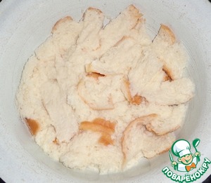 Батон залить молоком. (больше 1 ст. л. не брать, потому что тесто будет жидкое).