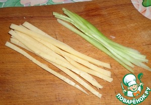 Закрепляем полосочки и подкладываем их под низ фрикадельки.