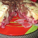 Сегодня решила к чаю приготовить незамысловатый пирог с ягодами. Посмотрев на исходный рецепт, решила добавить маргарина... оставалось у меня немного творога - добавила и его... и в сладком пироге кислинка смородины... вышло очень вкусно.