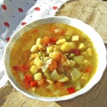 Впервые об этом блюде я услышала от своей мамы еще в детстве. Во время войны мама попала в плен и жила в Германии. Она рассказывала, что в германской армии айнтопф готовили в обязательном порядке один раз в неделю и в этот день офицерский корпус питался из одного котла вместе с солдатами. Айнтопф и означает в переводе с немецкого - "один котел". " В северогерманских домах вместо печки горел открытый огонь. На этом костре было место только для одного котла, и все продукты варились в нём вместе. Айнтопф — блюдо немецкой кухни, заменяющий собой и первое, и второе. Это очень густой суп, который варится на воде или бульоне. Ингредиентами могут быть: овощи: картофель, морковь, брюква, а также различные виды капусты (белокочанная, цветная, брюссельская, брокколи); бобовые: горох, чечевица, фасоль, стручки зелёной фасоли и др.; крупы, хлеб, макаронные изделия, мясо, копчёности, сосиски или другие мясные продукты. Традиционно айнтопф готовят не только в Германии, но и в Бельгии, Испании и Франции. В бельгийский айнтопф часто добавляют светлое пиво.