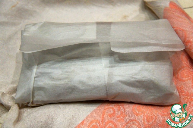Затем в салфетку и в одеяло на 20-30 минут, чтобы корочка пирога отмякла, но сам он не остыл.