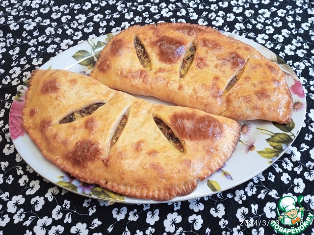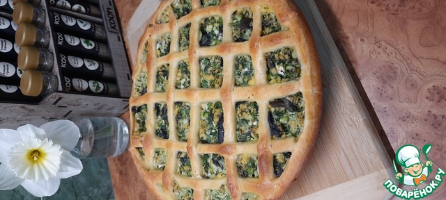 Пирог из творожного теста с грибами