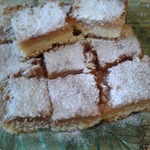 Лайм за ночь должен промариноваться и пустить сок. Содержимое баночки выложим в блендер, сюда же разобьем яйца. Измельчим до пюреобразного состояния (я массу процедила через крупное сито, убрала всю корочки). Выльем начинку на корж, запекаем при 180 градусах около 15 минут. Дадим полностью остыть. Посыпаем сахарной пудрой. Нарежем квадратами или прямоугольниками. Приятного аппетита!