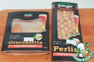 Укроп нарезаем мелко. Далее я использовала вот такой сыр. Он очень вкусный и эстетически красивый. особенно в салате. Вы можете использовать обычный копченный, но лучше такой. Тогда салат подойдет и на любой праздник. Он не дорогой. 150 гр такого сыра у нас стоит 65 рублей.