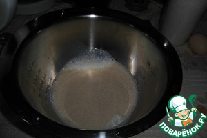 2. Подогреваем молоко, добавляем дрожжи, сахар и даем постоять до тех пор, пока не появятся пузырьки.
