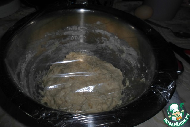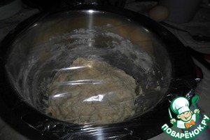 3. Добавляем в "пузырьки" масло, просеянную муку. Замешиваем некрутое тесто, накрываем его полотенцем и ставим в теплое место. Даем подняться.