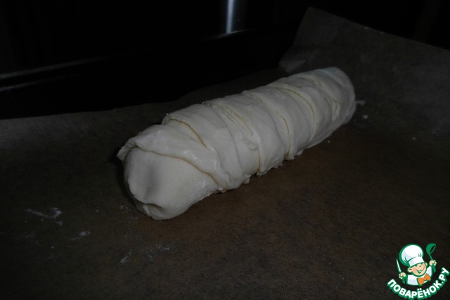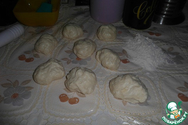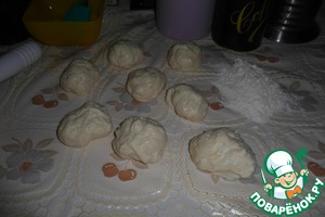 4. После того как тесто поднимется, обминаем его и делим на 8 равных частей.