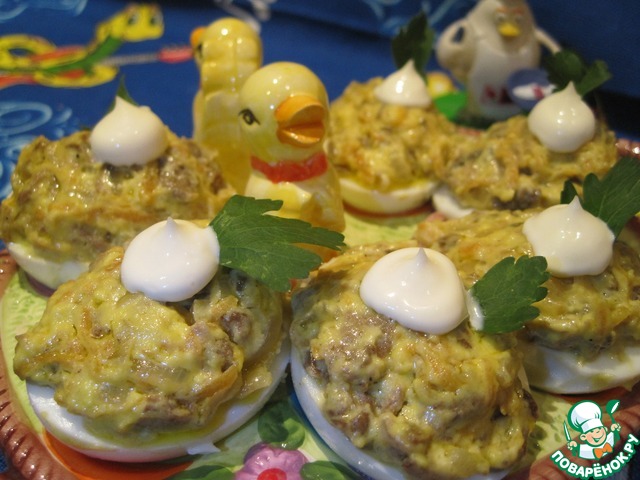 Рецепт «Фаршированные яйца "Гурман" с сушеными грибами»: