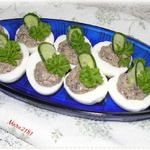 Сегодня, милые, хочу вам представить закуску, которая вмиг исчезает со стола, когда у меня гости. Аромат сушеных грибов никого не оставляет равнодушным. Если у вас после осени осталась горсточка сушеных грибов, приготовьте эту закуску, не пожалеете! Ее приготовить очень просто, а результат всегда радует. На сайте рецептов фаршированных яиц очень много, но такого не нашла. Угощайтесь!