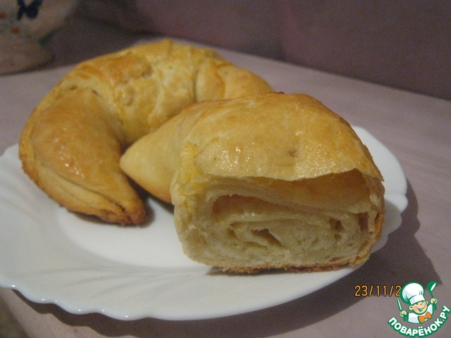 вопрос по рецептуИ вопрос - пробовали ли это тесто со сладкой начинкой? Ну снова, как рогалики. Или вообще без начинки - просто тесто. Наверное в этом случае надо больше сахара в тесто добавить, иначе будут не как десерт, а как хлеб.