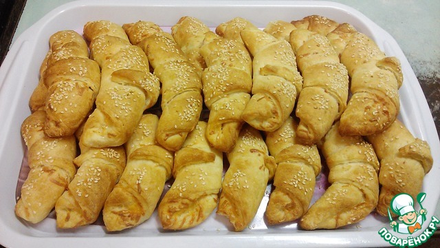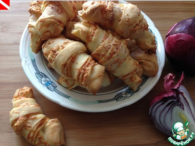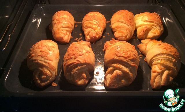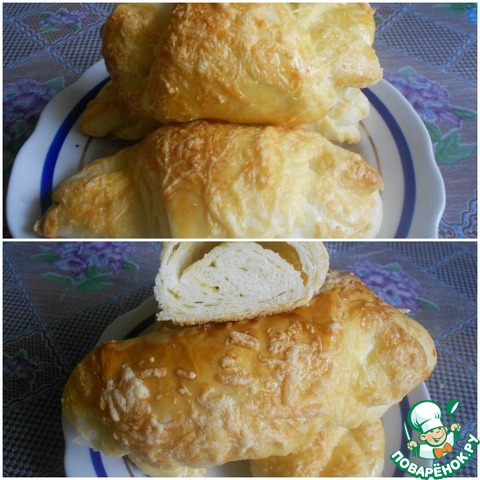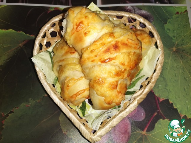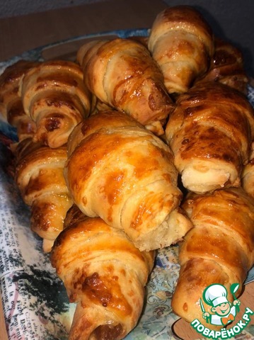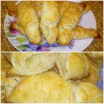 Восхитительные мягчайшие круассаны с сыром. Влюбилась в них с первой пробы! Настоятельно рекомендую! На сайте есть рецепт сырных круассанов, надеюсь, Вы примите и мой вариант.