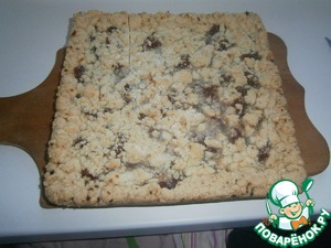Накрываем остальной крошкой, и ставим в заранее разогретую духовку при 150 градусах (если нет градусника то у меня это 3 из 5) на 30-40 минут смотрите по корочке.
