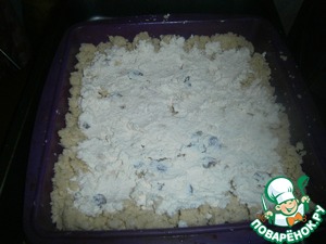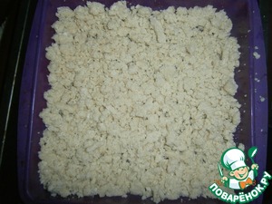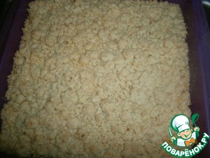 На дно формы высыпаем половину мучной крошки, у бортов немного возвышенность