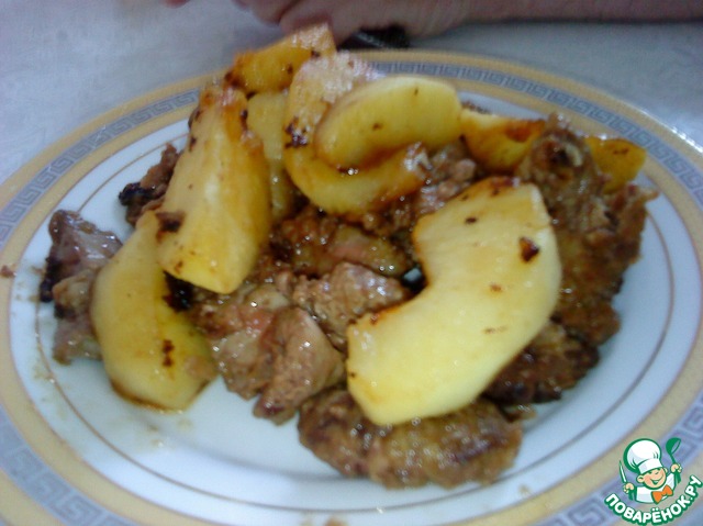 Довольно быстро и вкусно. Нам это блюдо очень понравилось. Мягкая печень под кисло-сладким ароматным соусом. Кусочек печени вприкуску с яблочком - прелесть (но это конечно на любителя).
