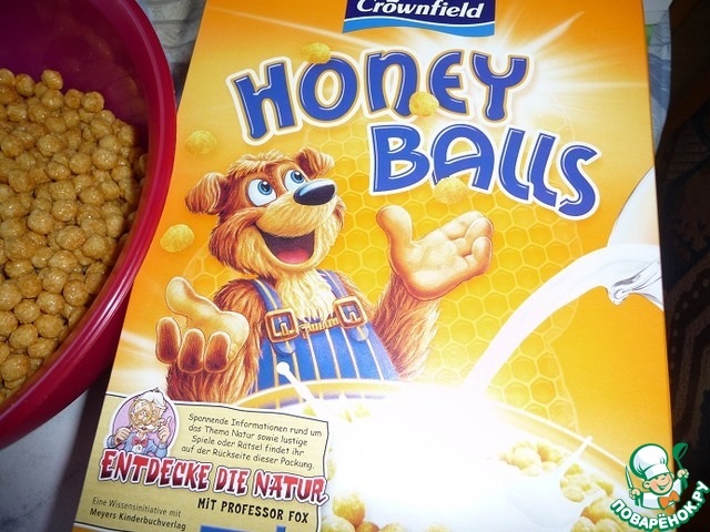 - Сухой завтрак (хрустящие кукурузные шарики с медом) — 375 г